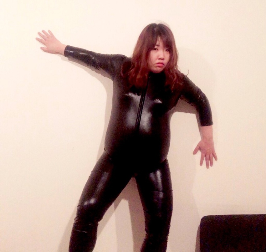 ○お腹に収納 お腹を筆箱かわりにペンを10本挟む